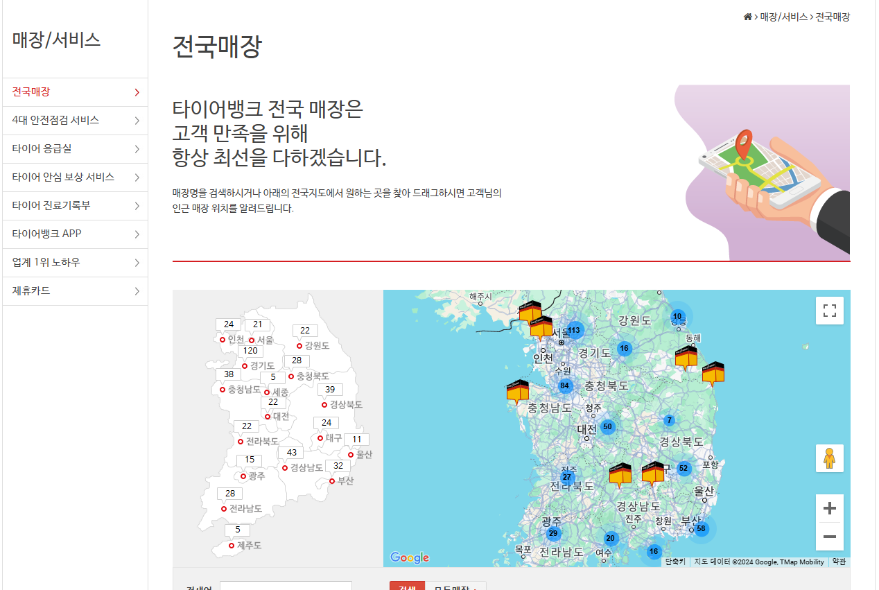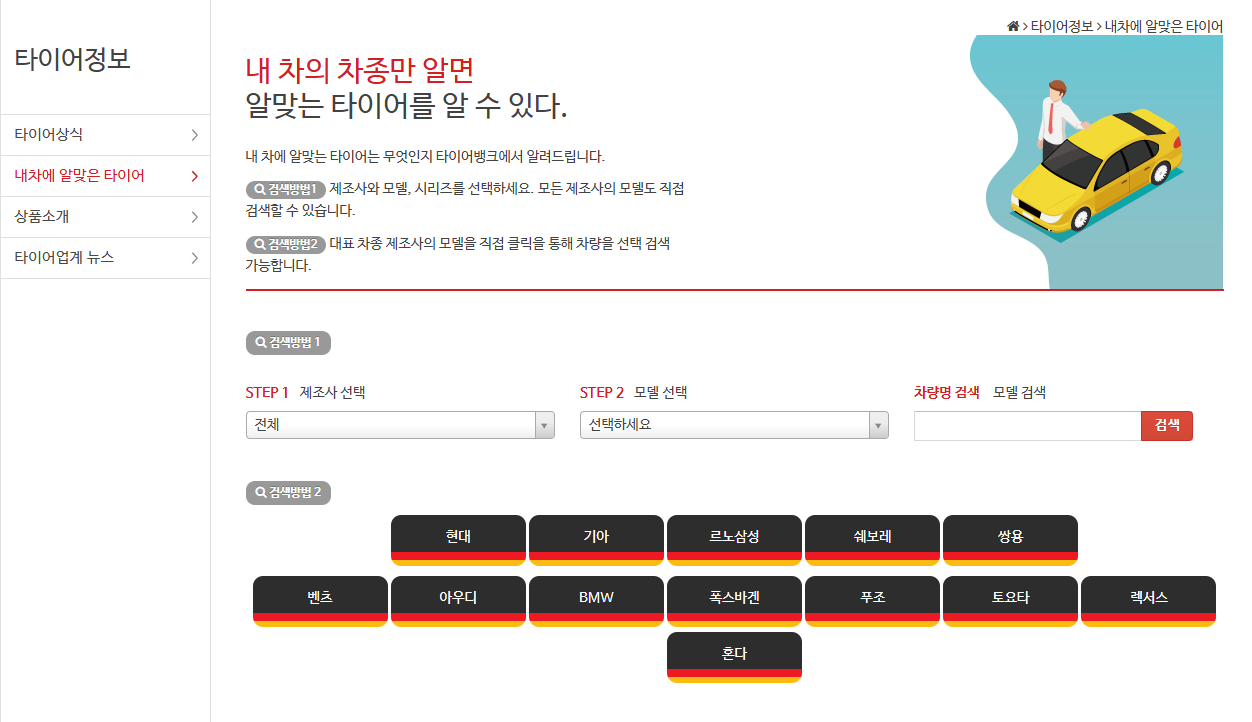 타이어 뱅크는 다양한 이벤트를 하고 있고, 전국에 매장이 잘 분포되어 있어서 좋습니다. 타이어도 차종에 따라서 선택하기 쉽게 되어있습니다.
