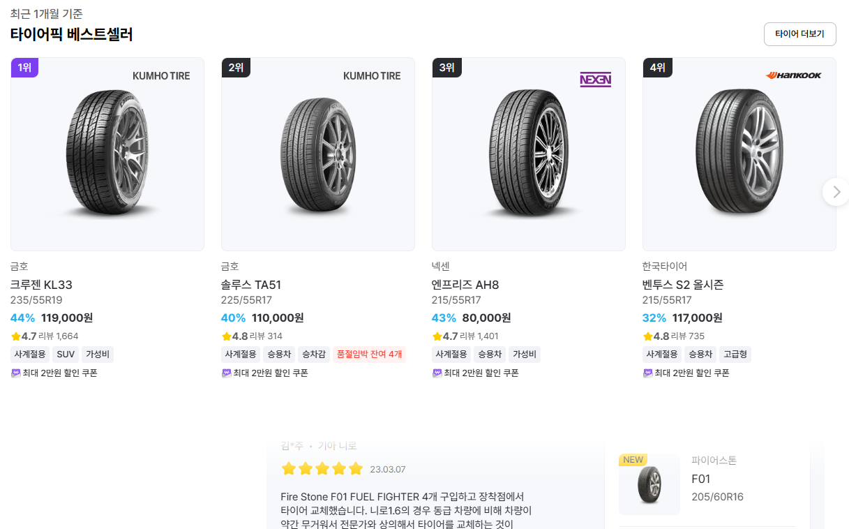 - 리뷰 확인: 다른 사용자들의 후기를 통해 타이어의 성능과 내구성을 확인하세요.