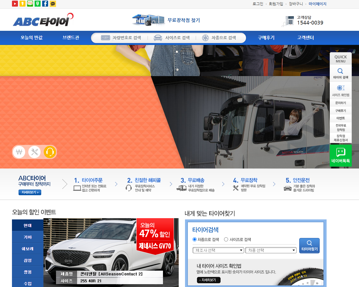 ABC 타이어는 전국에 무료 장착점이 있어서, 주문하고 배송에 장착까지 한 번에 쉽게 할 수 있어서 좋습니다.