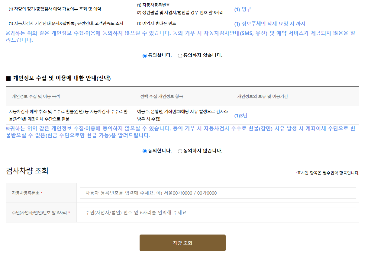 - 차량 번호 입력 후 검사 대상 여부 확인