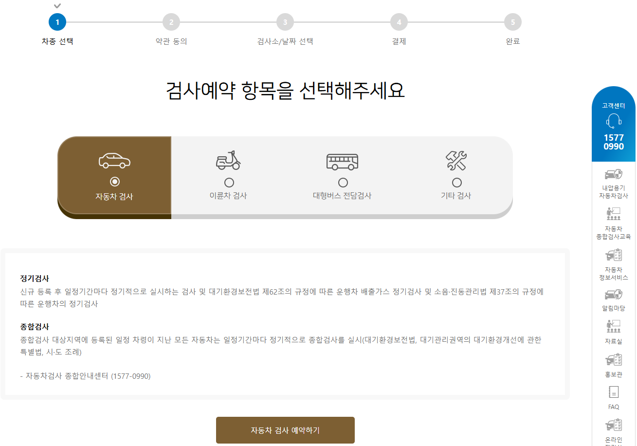 - 첫 화면에서 '자동차검사 예약' 메뉴 선택