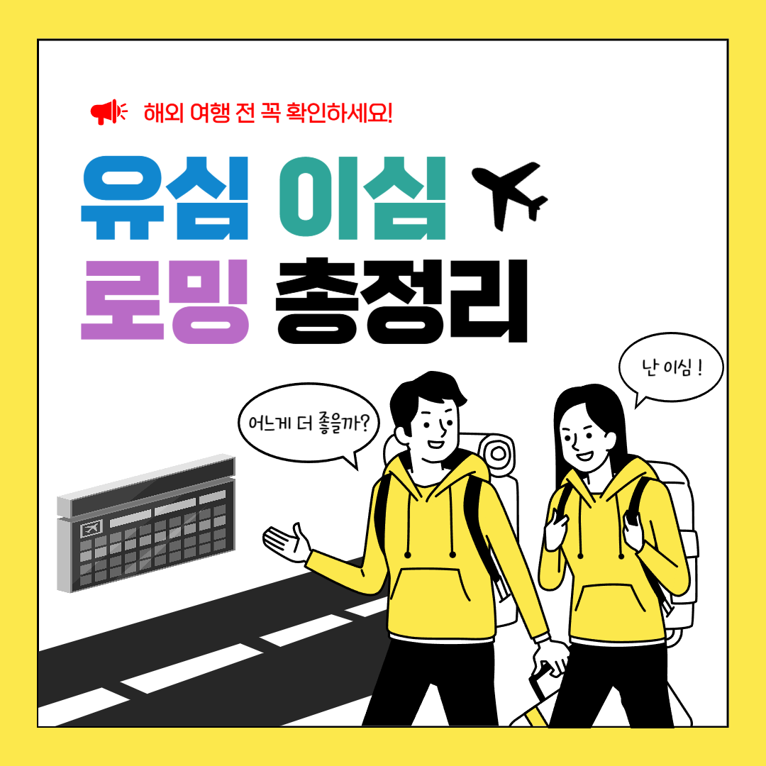 하지만 유심(SIM), eSIM, 로밍 중 어떤 방식이 가장 적합할지 고민되시죠? 저도 처음에 여행 갈 때는 로밍만 있는 줄 알고 로밍만 하고 해외로 나갔었는데요. 이번 글에서는 각 옵션의 장단점을 명확하게 비교하고, 이 글을 읽으시는 분들께 꼭 맞는 선택을 도와드리겠습니다.