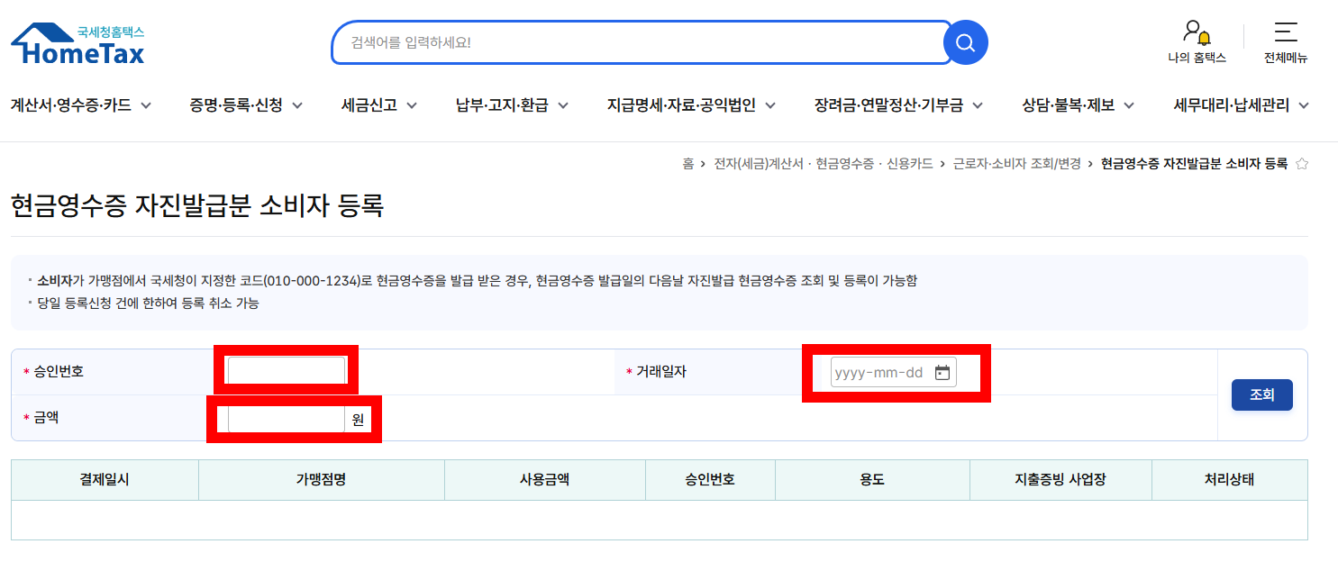 현금영수증 발급 내역은 국세청 홈택스에서 조회 가능합니다.